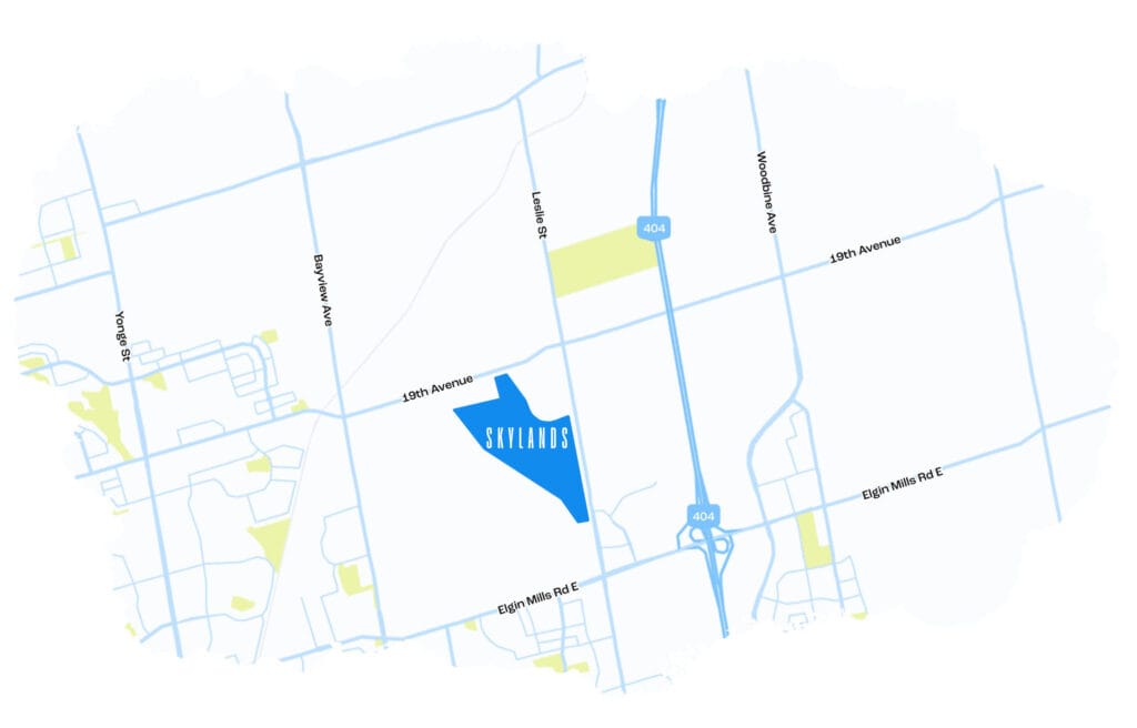 Skylands Townhomes offers excellent transportation options for convenient commuting and easy access to surrounding areas. Located near Leslie Street and 19th Avenue in Richmond Hill, the development is close to major highways, including Highways 404, 407, and 7, which makes travel to the Greater Toronto Area quick and efficient. For public transit, Richmond Hill GO Station and Gormley GO Station are nearby, providing residents with access to regional train and bus services for easy commutes to downtown Toronto and other locations across the GTA.